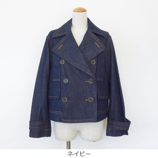 かっちりとした襟やダブルボタンでカジュアルすぎず、きれいめに着こなせます。