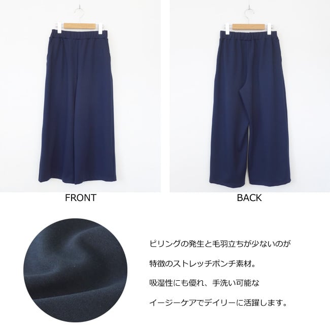 柔らかで落ち感のあるストレッチポンチ素材を使用したガウチョパンツ。
