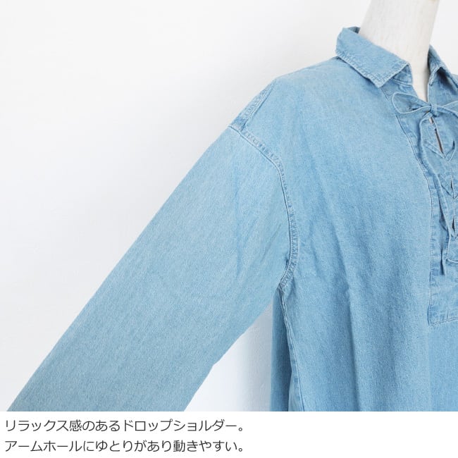 MICA&DEAL (マイカアンドディール) ブラウス レースアップ デニム ドロップショルダー 0126101029