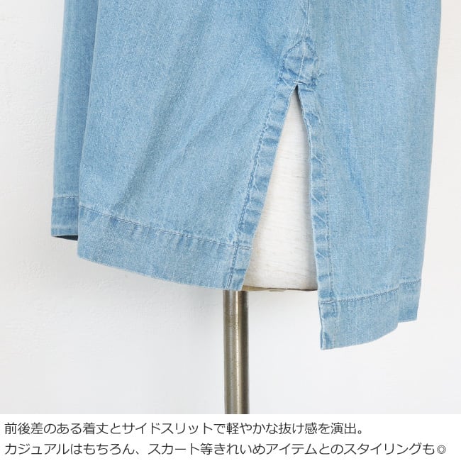 前後差のある着丈とサイドスリットで様々なボトムに合わせやすいアイテムです。