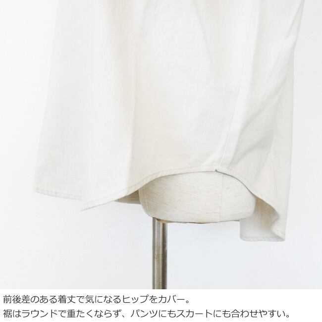 程よく身体が泳ぐサイズ感で体型を拾わず、女性らしい抜け感を演出します。
