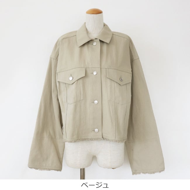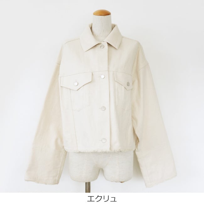 Dignite collier (ディニテコリエ) ショート ジャケット 綿麻混 ドロップショルダー フリンジ TK-80267041